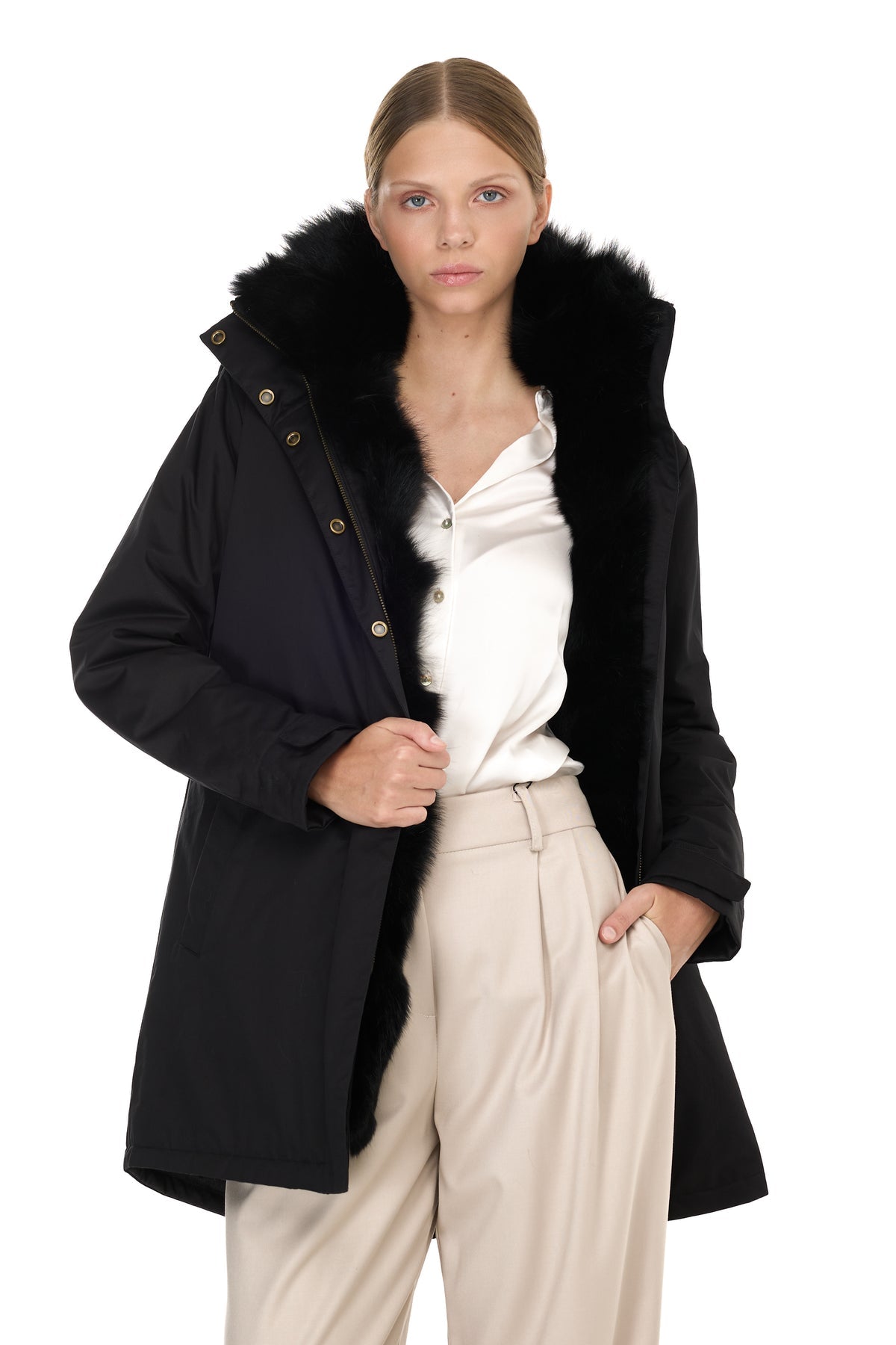 Parka Elegant BLACK con Collo Alto e Gilet in pelliccia Removibile
