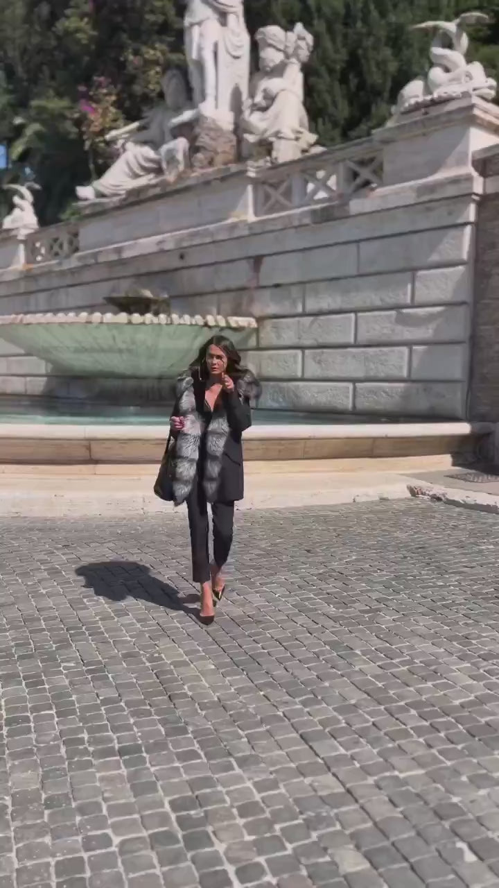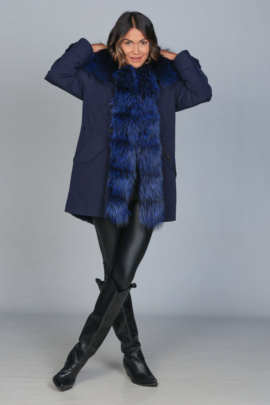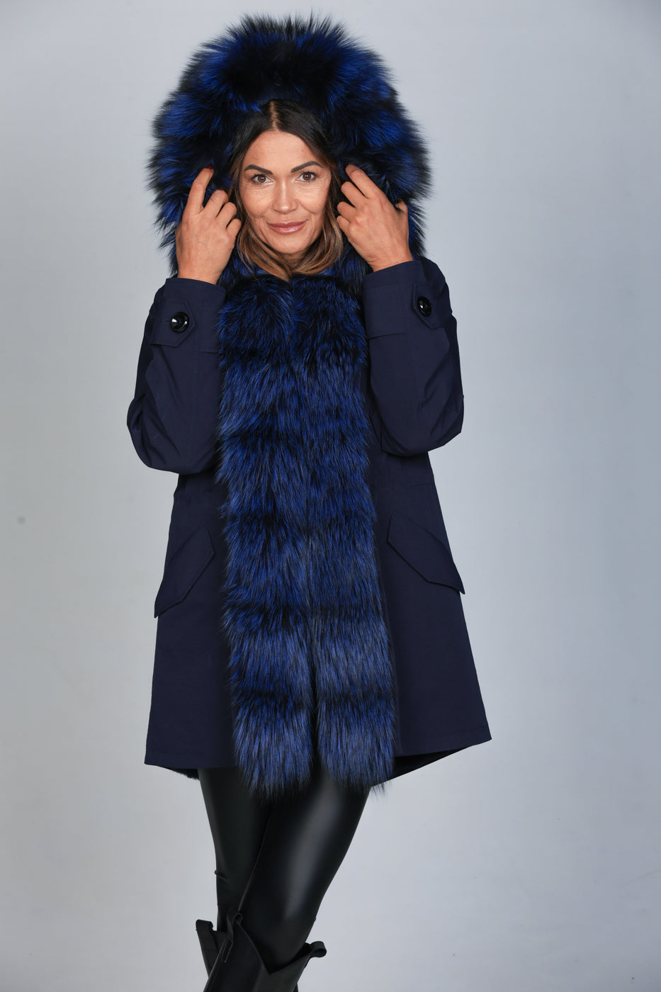 Parka long denim fox silver blue