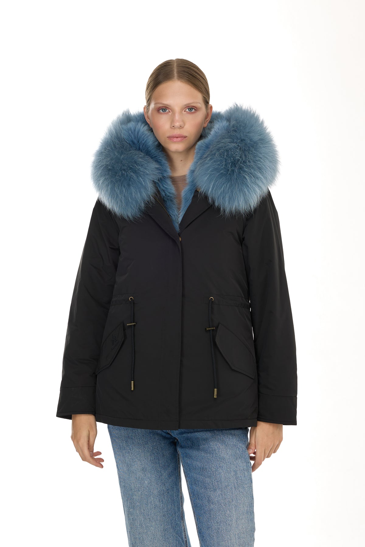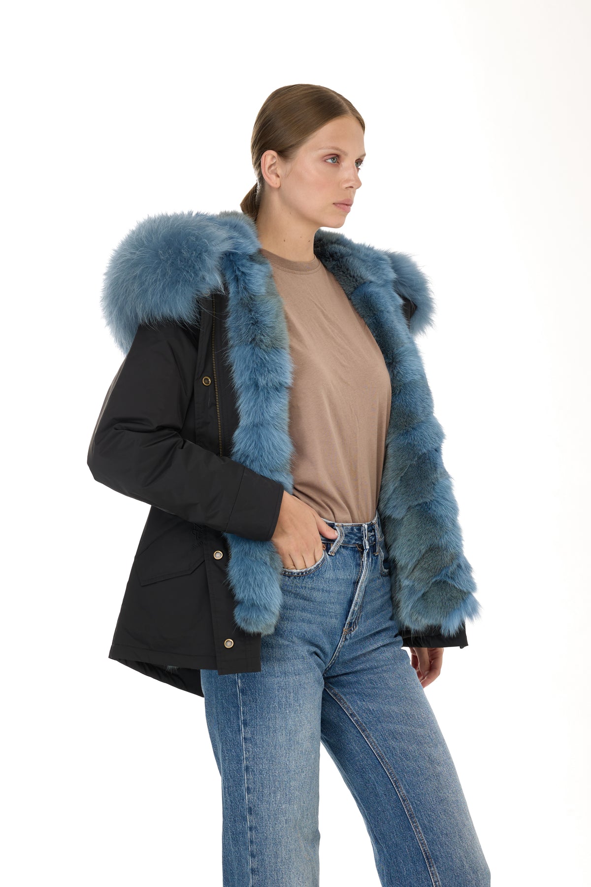 Parka short Urban GREYISH BLU in Misto Cotone Impermeabile con Gilet in coyote